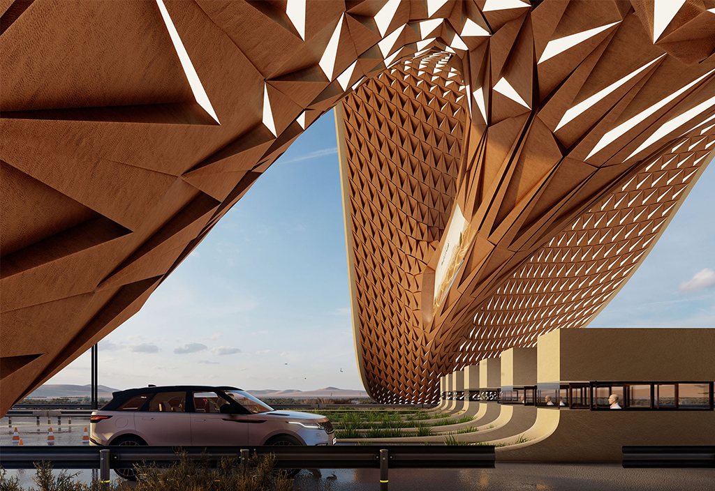 In designing the gateway to this city, we turned to the most ancient symbol of its vernacular architecture: the kapar — a form that has sheltered the people of this land for centuries and, in its simplicity, embodies the harmony between humans, nature, and climate.