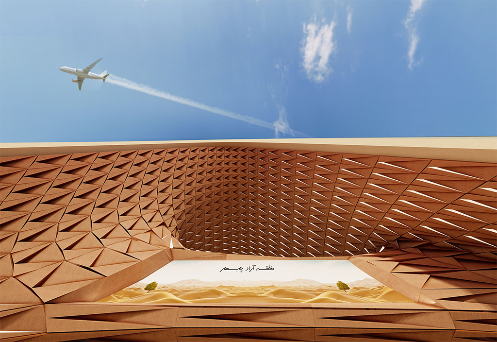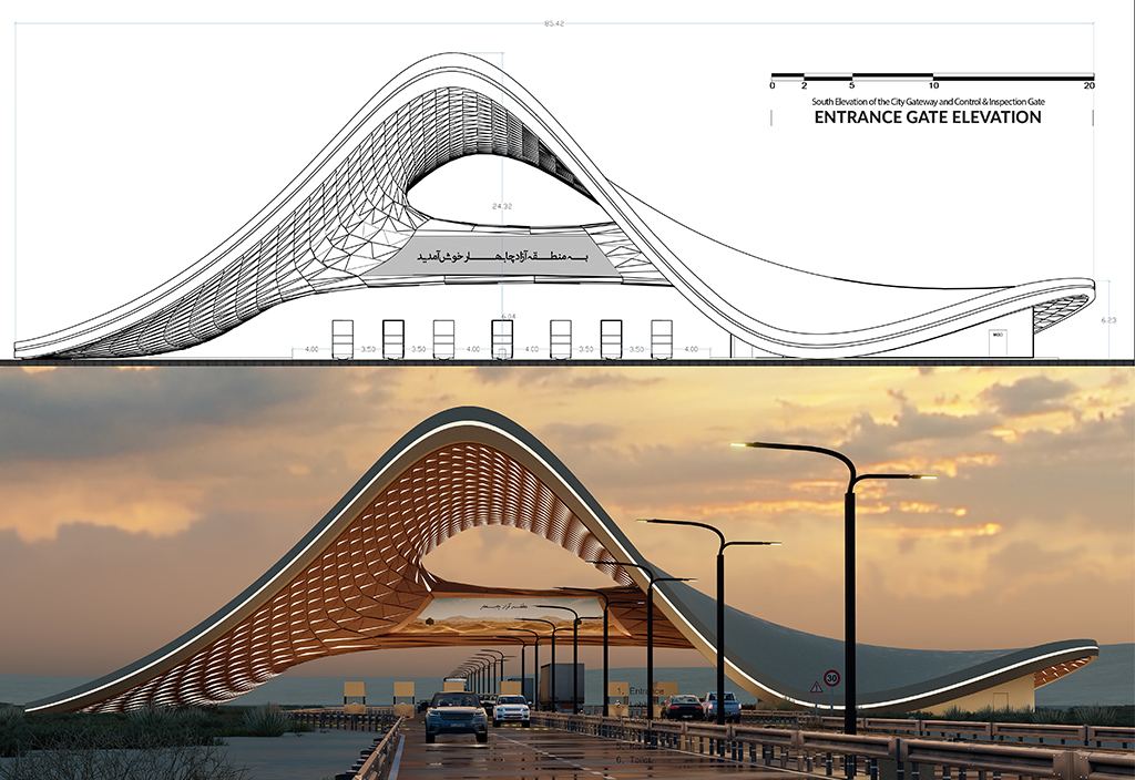 Here, the gateway functions not merely as a practical structure to control and direct traffic flow but as a cultural statement. Upon entering the city, this monumental structure evokes the traveler’s awareness of Chabahar’s local roots while simultaneously guiding them toward a vision of the future. Chabahar deserves an entrance that is not a stone wall or a silent marker, but a poem of Iranian architecture—a poem that whispers along the shore and heralds the promise of a new civilization to those who arrive.