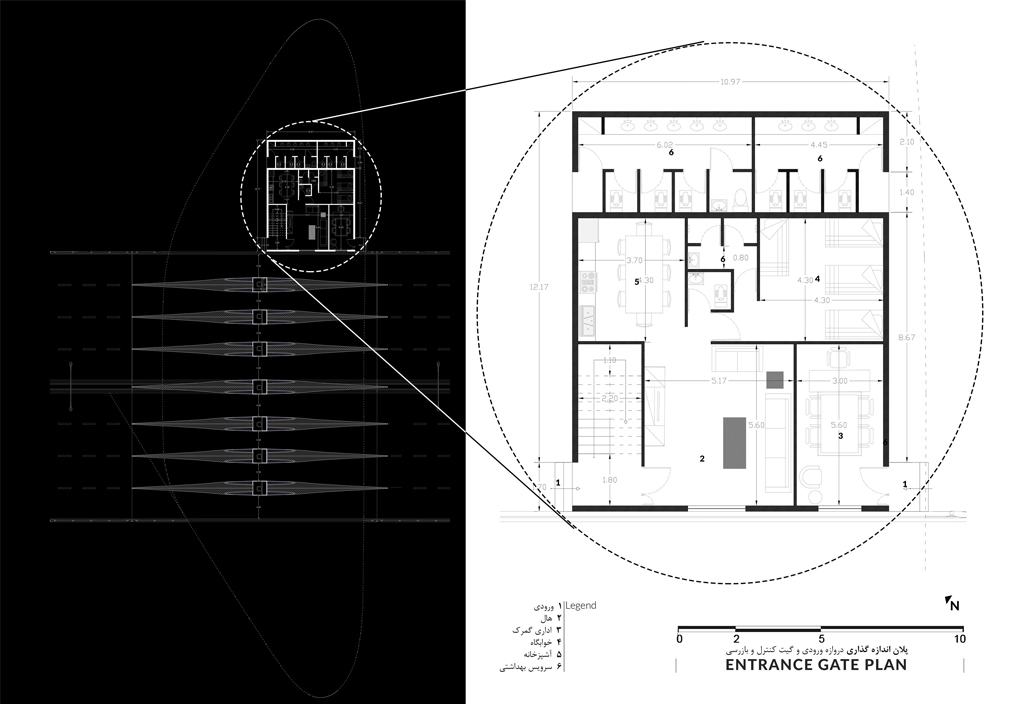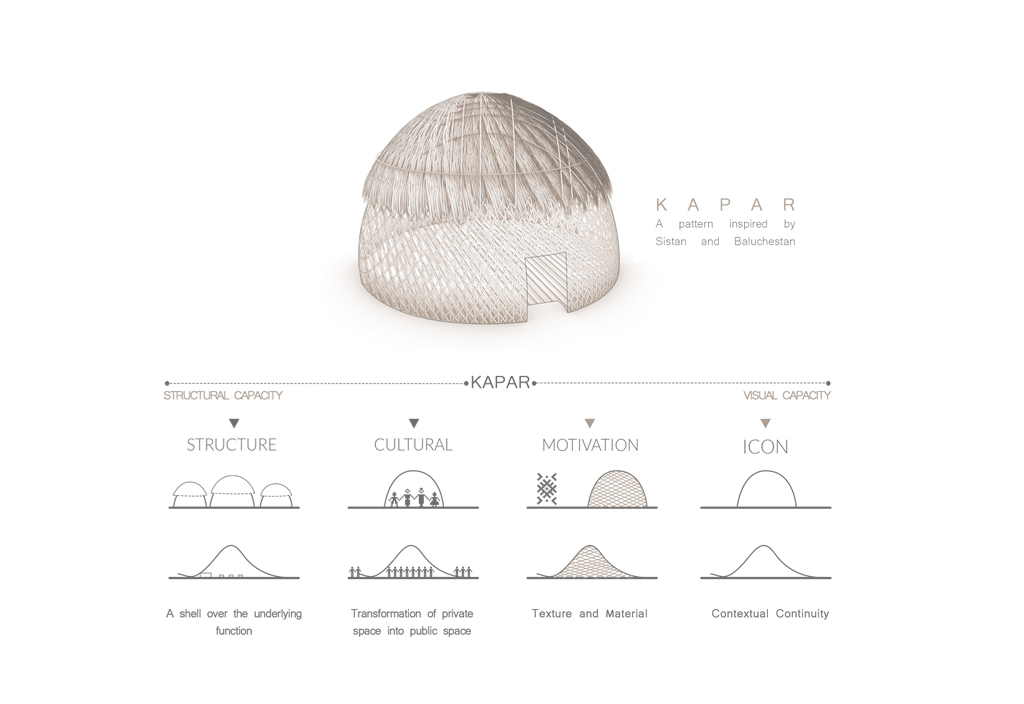 In addressing the design of the city’s gateway, we perceived it not merely as a physical landmark but as a —a transitional space between inside and outside; a duality of enclosure and openness, of shelter and passage. Inspired by the , the archetypal vernacular structure of Baluchestan, we sought to transform the gateway from a static mass into a fluid, dynamic spatial joint—one that elevates the act of entering the city from a simple to a meaningful .