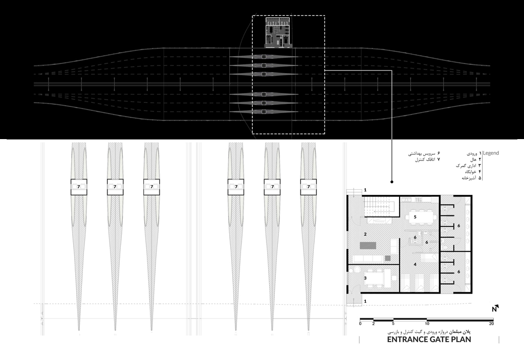 طراحی دروازه بر اساس نظام دسترسی سواره و پیاده، به گونهای که عبور روان خودروها و امنیت مسافران همزمان تأمین شود.