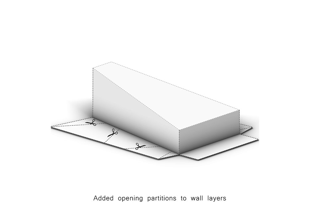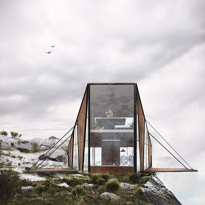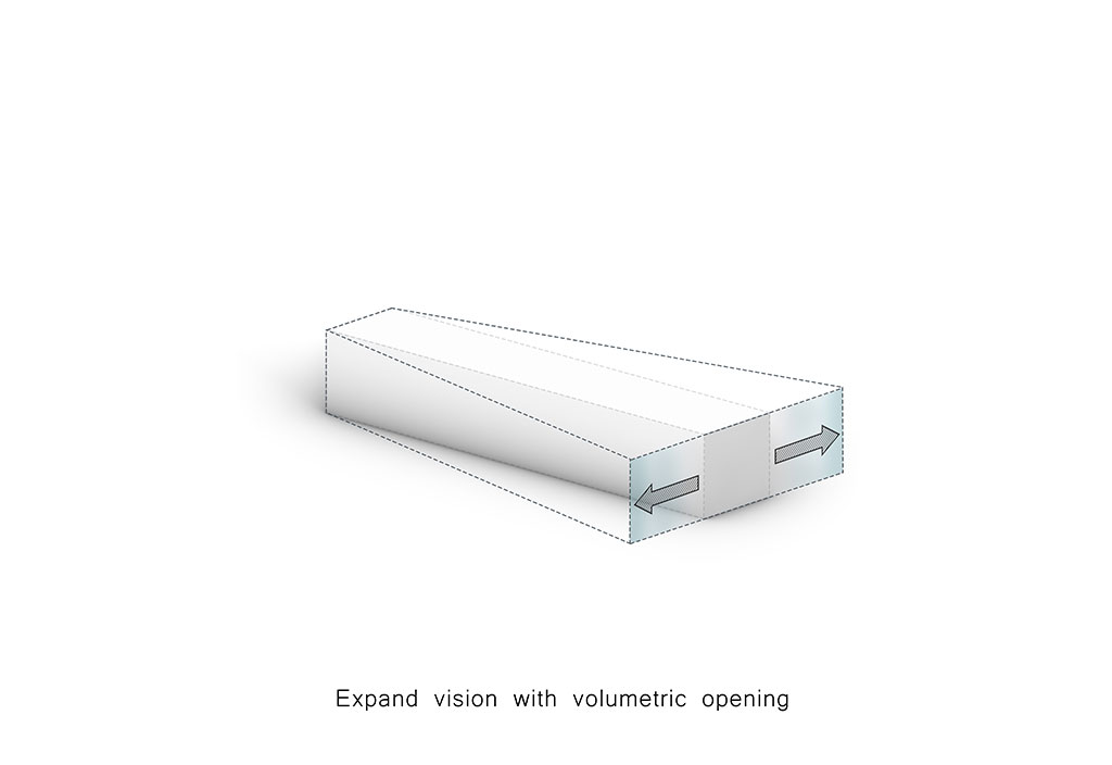 کارفرما از پروژه برنامه و کیفیتهایی را مطالبه مینمود که به فضایی بیش از ظرفیت فعلی سایت پروژه نیاز داشت. به این ترتیب تصمیم گرفتیم پروژه را در قالب یک ماژول فعال و قابل انعطاف تعریف کنیم. جعبه ای پویا که اجزایش همچون اجزای یک ماشین، قابلیت باز و بسته شدن داشته باشد و بتواند محدودیتهای ابعاد زمین را با باز شدن لبه های بیرونی به نفع فضای قابل استفاده ی پروژه جبران کند. به این ترتیب با تبدیل دیوارهای سبک جانبی به کفِ قابل استفاده، تراسهایی معلق ایجاد شد که میتوانست ضمن افزایش حجم ویلا در زمانهای مورد نیاز، چشم اندازهای طبیعی منطقه را در جهات دلخواه بسته به انتخاب مخاطب عرضه کند. پویایی جداره ها، ضمن کنترل حجم و شفافیت فضا امکان کنترل نور و دما در تابستان و زمستان را برای مخاطب ایجاد میکرد. در ادامه تصمیم گرفتیم سقف را شیبدار و انتهای جعبه را عریض تر کنیم تا بتوان از ظرفیت‌هایی فرمی ایجاد شده در جهت افزایش عمق دید به سمت بستر بکر طبیعی و کنترل نور استفاده کرد.